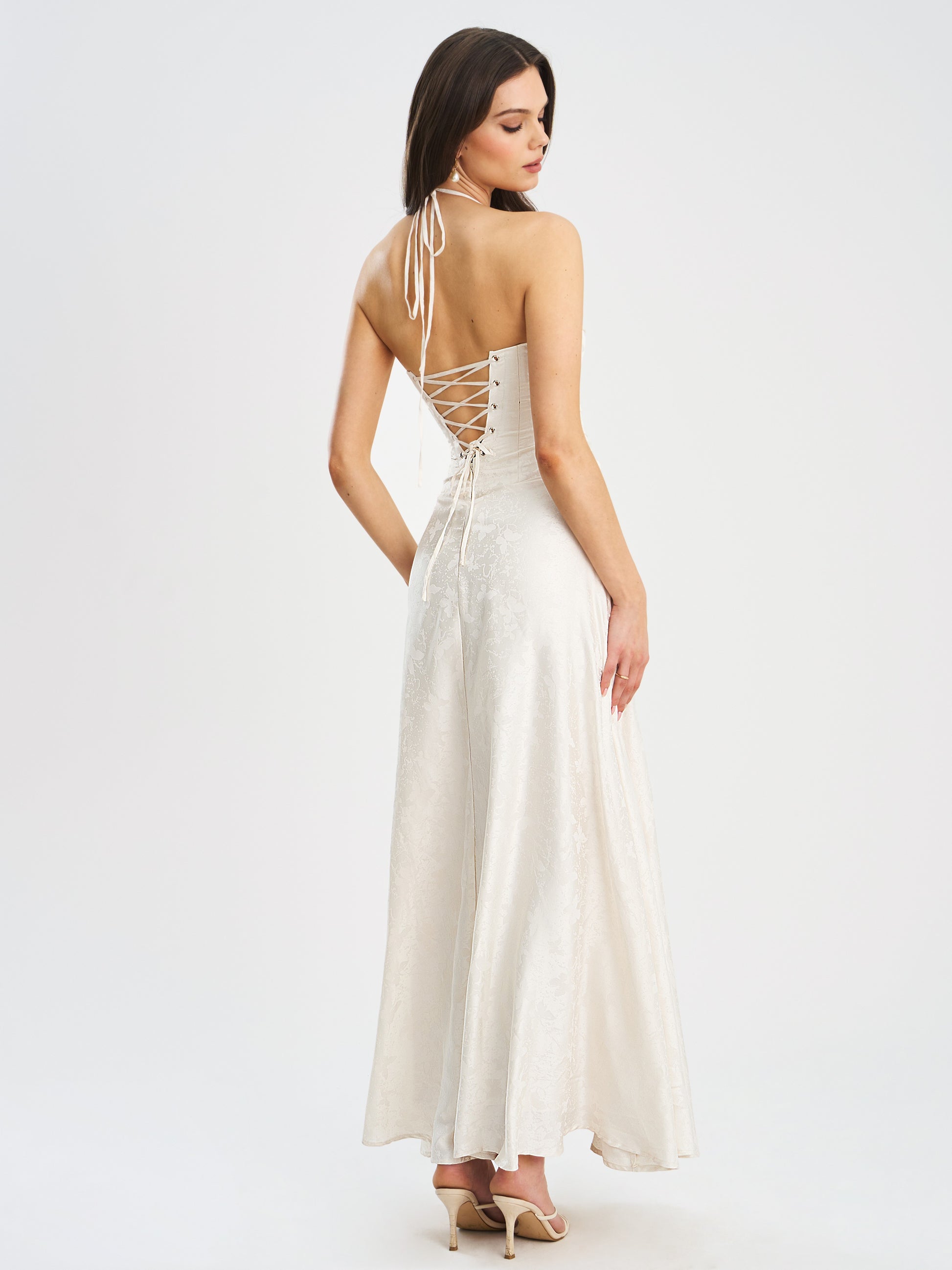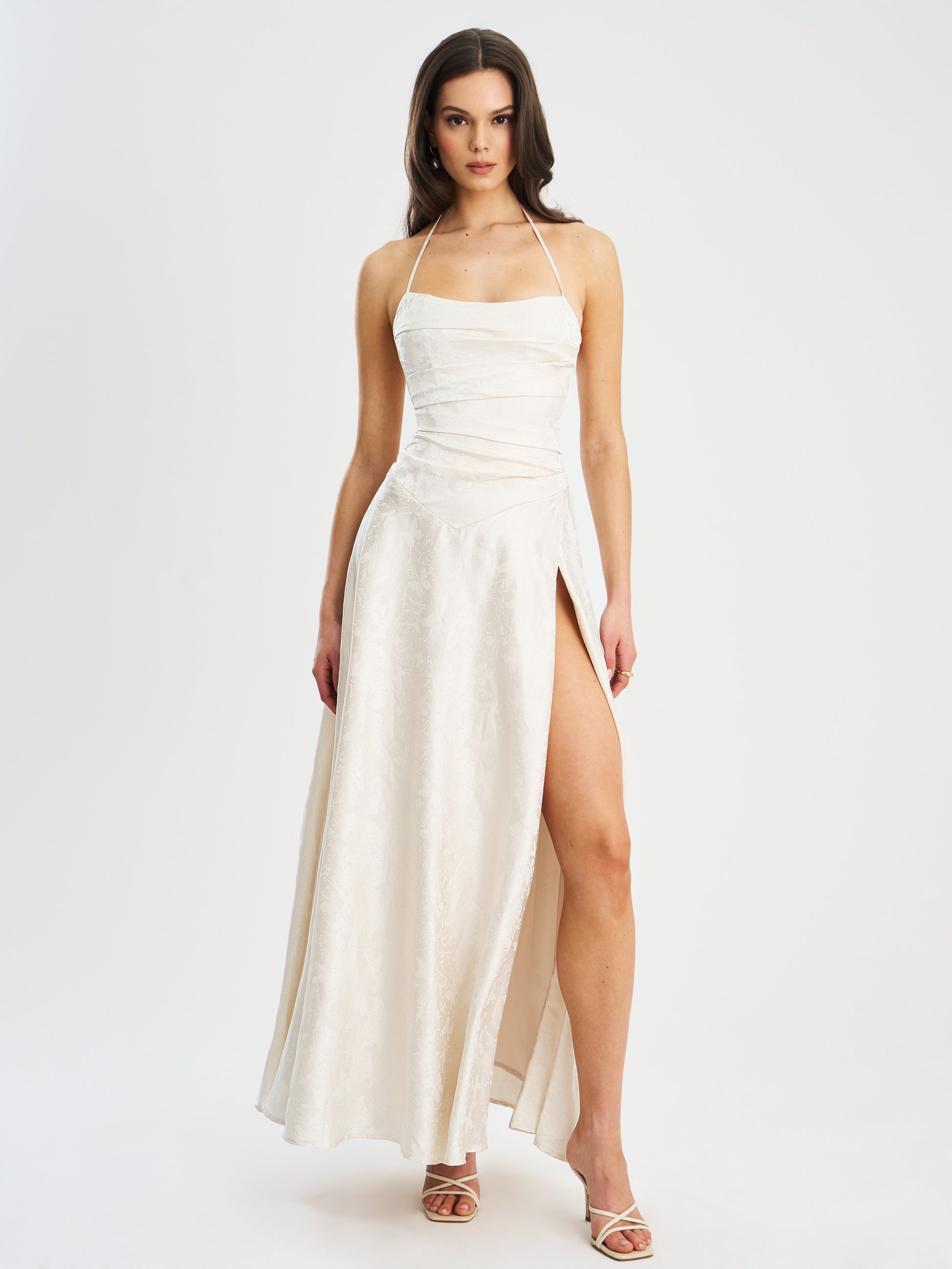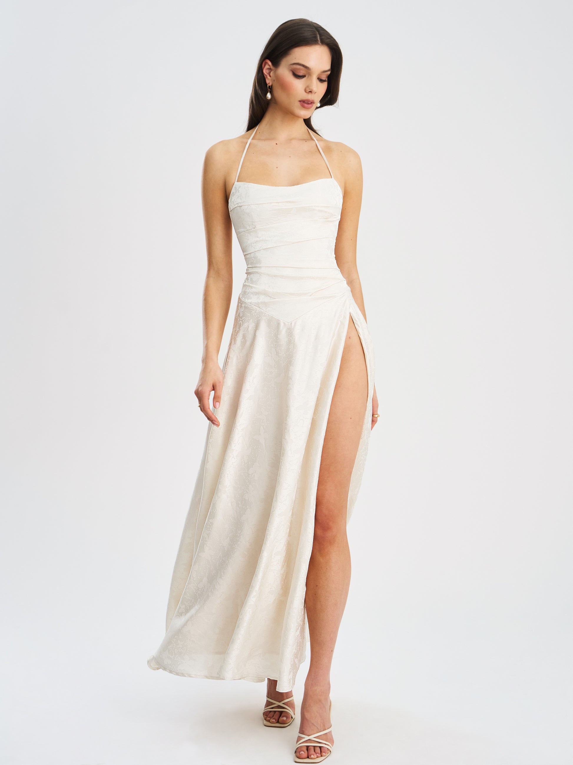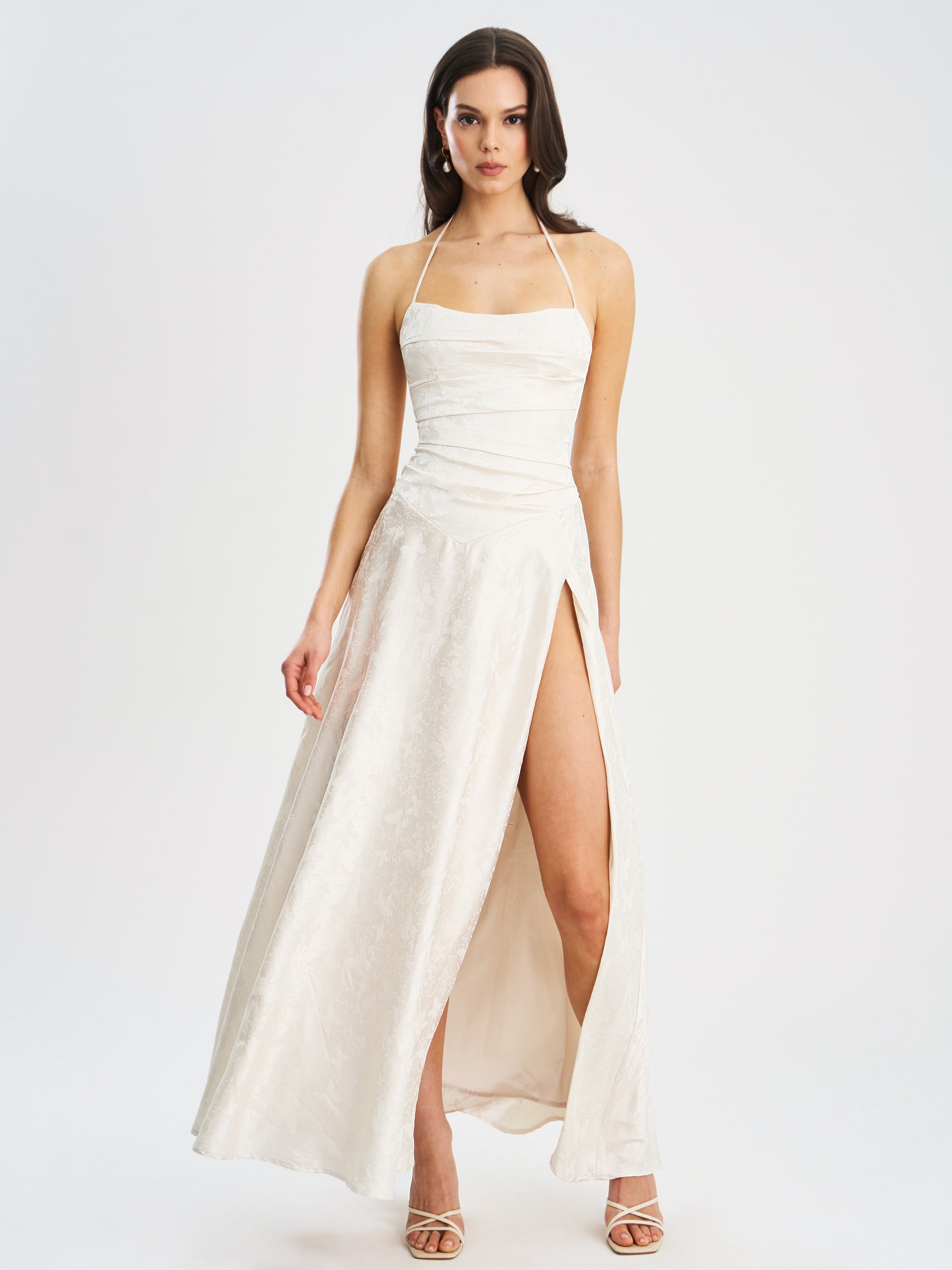 Raegan Pearl White Jacquard Rouched Maxi Dress