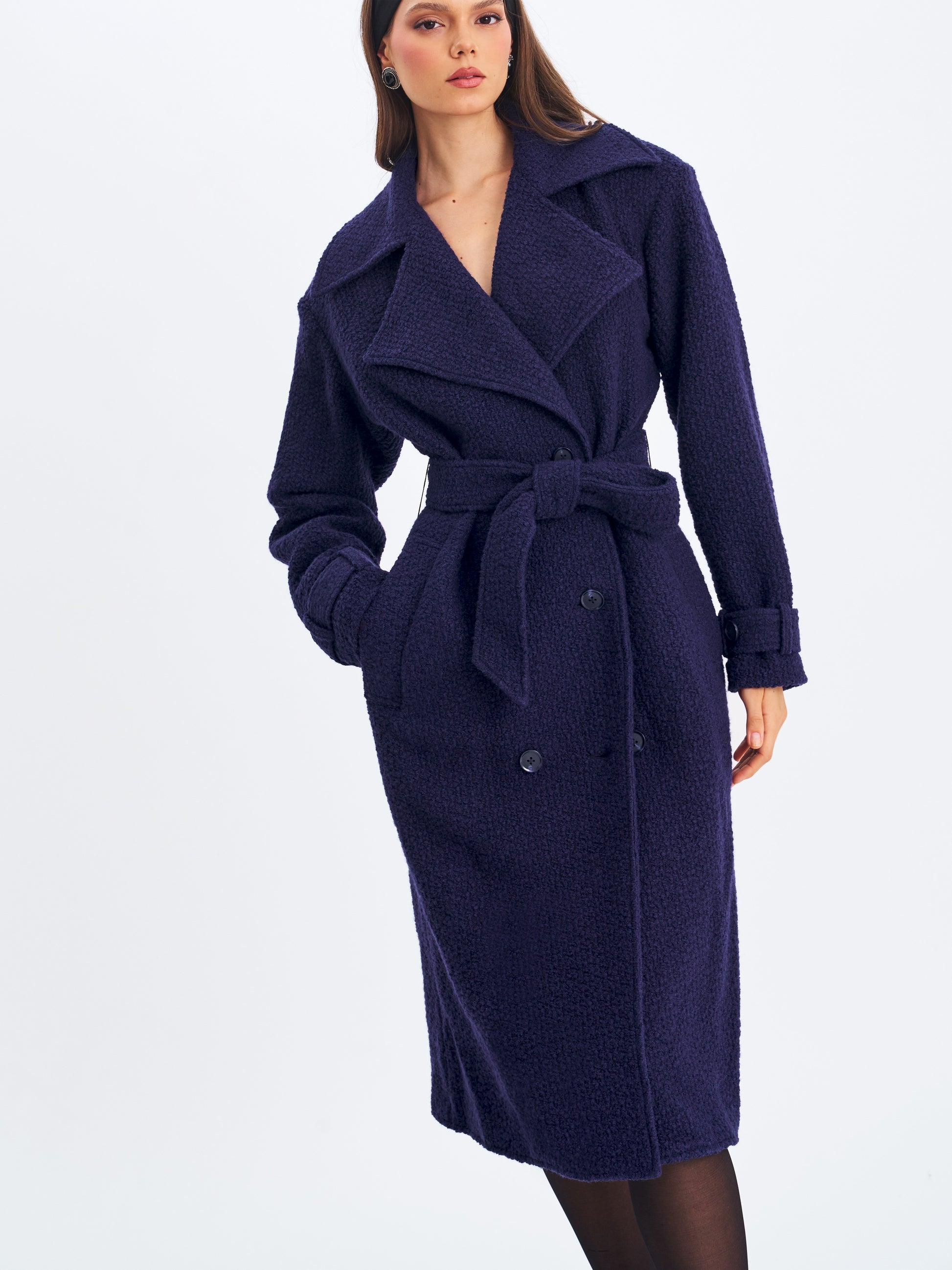 Jaelyn Midnight Blue Double-breasted Belted Coat
