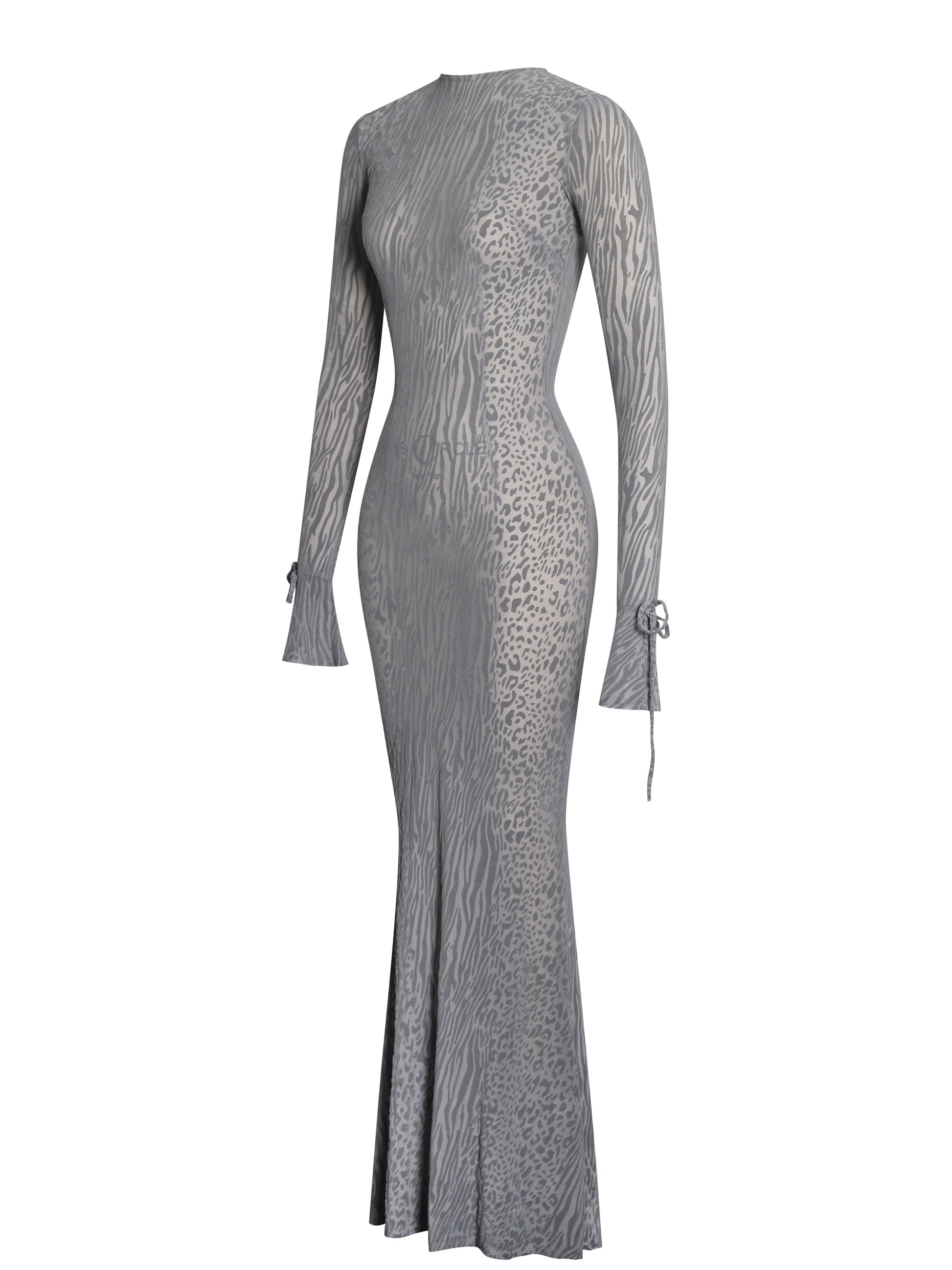 Waylynn Gray Animal Print Burnout Velvet Dress